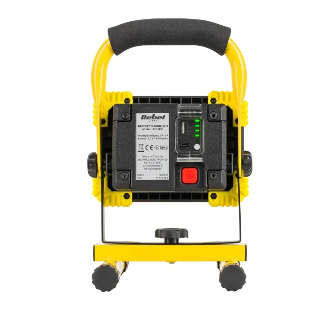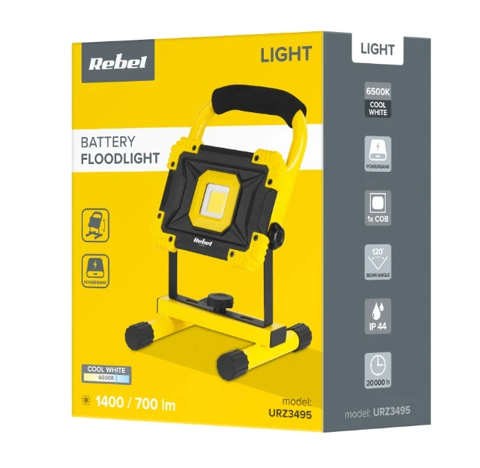 Reguleeritav käepide Välise aku funktsioon Võimsus: 20/10 W (50% juures) Valgusallikas: 1x COB Valgusrežiimid: 100%, 50% Värvitemperatuur: 6500K (külm valge)