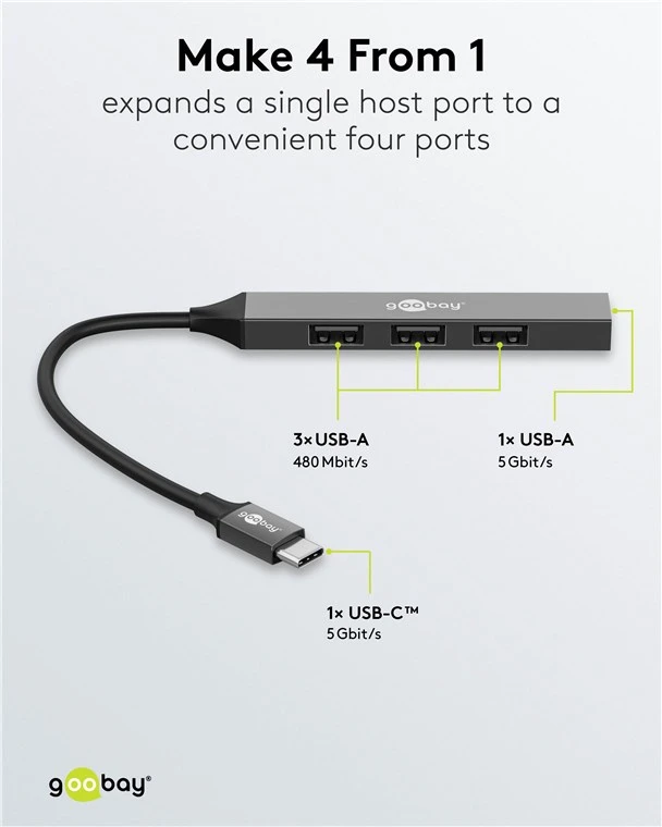Eriti kompaktse ja õhukese disainiga USB-C™ jaotur mahub igasse kotti ning on praktiline kaaslane reisil või liikvel olles. Kvaliteetne ja vastupidav alumiiniumkorpus.