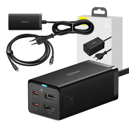 USB laadija USB-A 2xUSB-C pesad 66W Baseus GaN5 Pro HDMI must