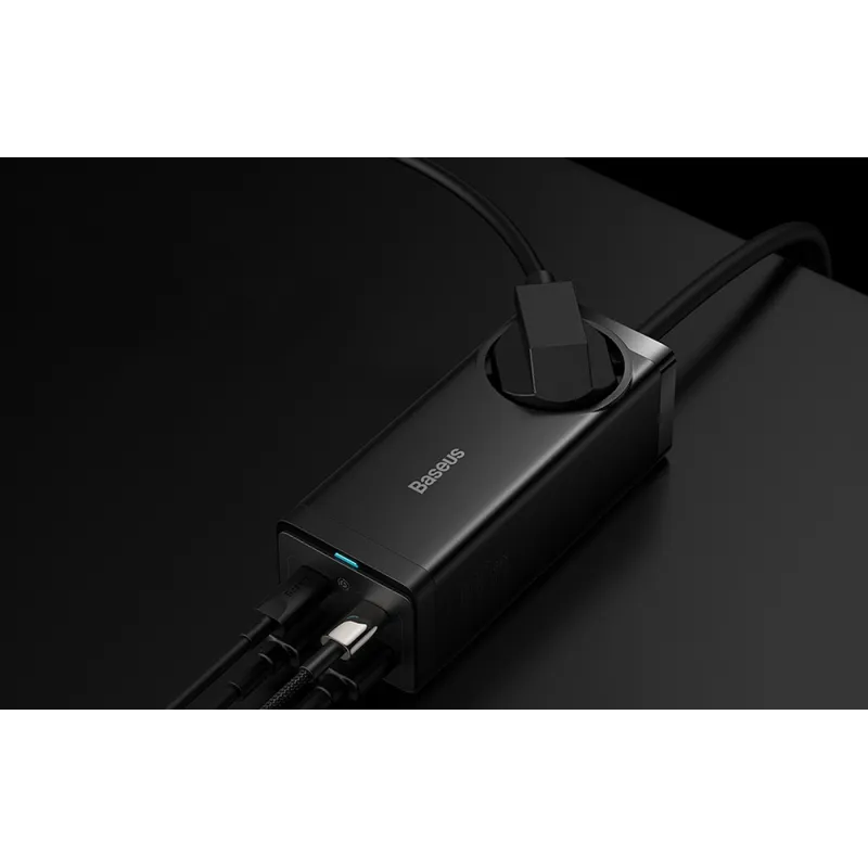 Baseus GaN3 Pro lauaarvuti pikendusjuhe on kompaktne, suure jõudlusega laadimisjaam, mis kasutab täiustatud GaN3 Pro (galliumnitriidi) tehnoloogiat, et pakkuda kokku 100 W võimsust. See ühendab standardse vahelduvvoolu pistikupesa mitme kiire USB-pordiga, võimaldades samaaegselt toita kuni viit seadet.