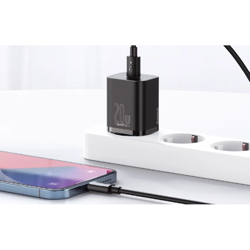 Baseus Super Si Quick Charger 1C (CCSUP-B01) on kompaktne võrgulaadija USB-C pordiga, mis on loodud pakkuma kiiret laadimist seadmetele kuni 20W. Põhiomadused