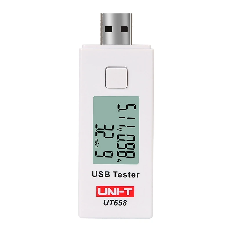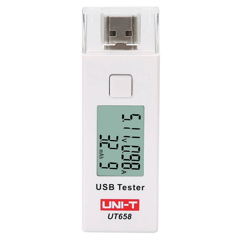 UNI-T® UT658 USB tester on lihtne ja mugav seade erinevate mobiilsete laadijate kontrollimiseks. Saate jälgida laadija pinget, voolu, võimsust ja pinge stabiilsust. Selle seadmega saate testida erinevaid laadimise juhtmeid, kuidas need teatud voolude juures käituvad, tänu sellele saate valida optimaalse juhtme säästes laadimiseks kuluvat aega.