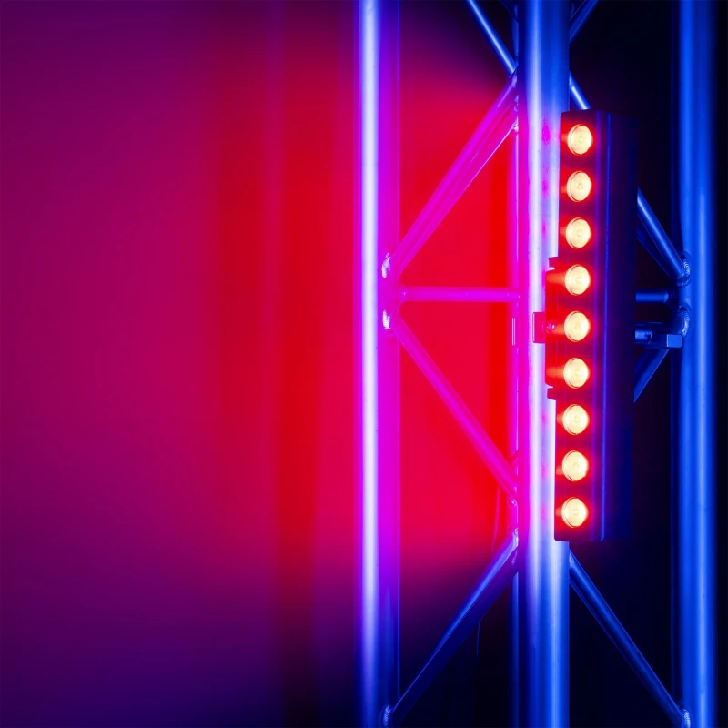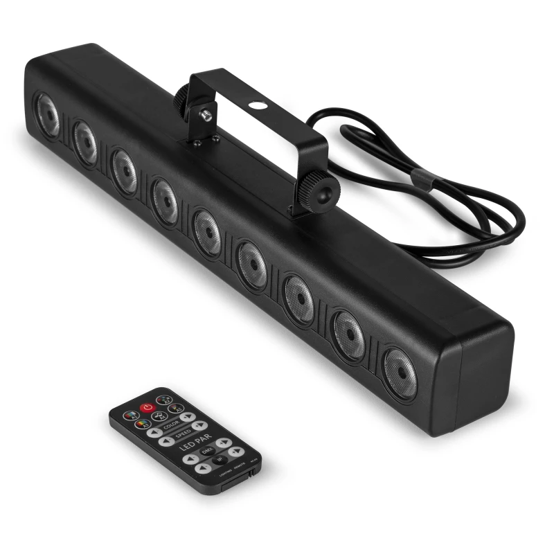 Orion Party Wall Bar sisaldab kaugjuhtimispulti, millega saad mugavalt valida erinevaid värve ja valgusefekte. Veelgi suuremaks kontrolliks saad valida DMX juhtimise XLR sisendi/väljundi kaudu, kasutades välist DMX kontrollerit.