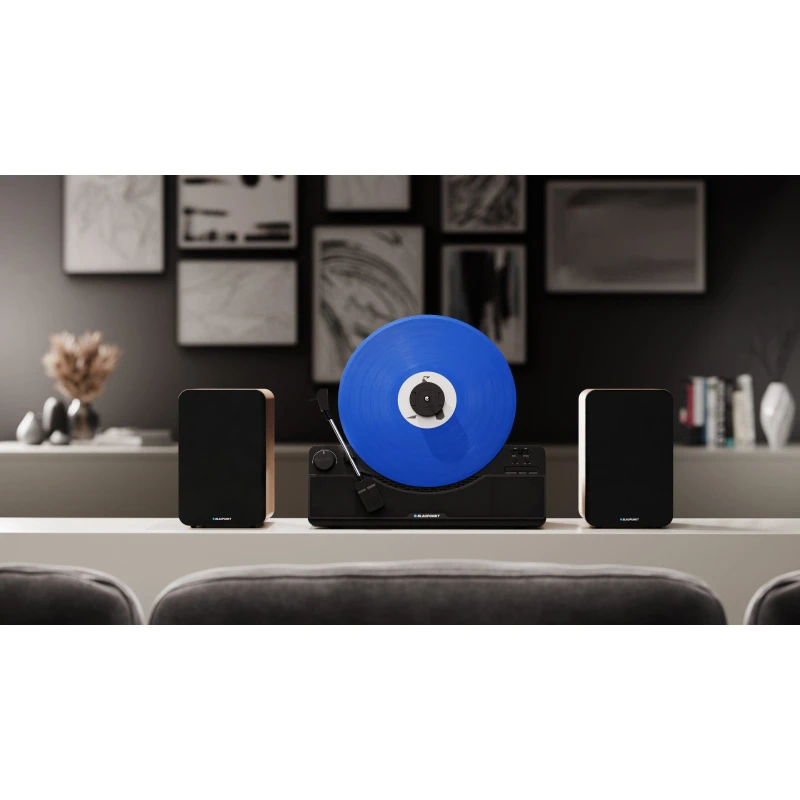 Blaupunkt VT100BK on vertikaalne vinüülplaadimängija, mis on loodud ühendama vintage esteetikat kaasaegse helifunktsionaalsusega. Selle elegantne ja ebatavaline vertikaalne disain hõlmab resonantsikindlat konstruktsiooni ja täisautomaatset rihmülekannet.