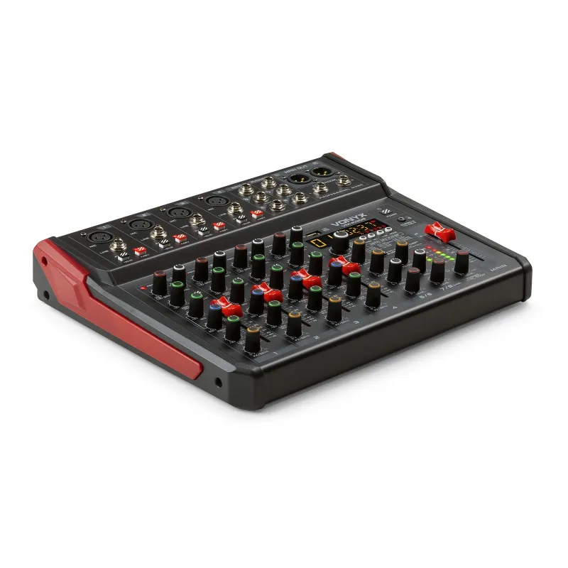 Vonyx VM-KG08 on kompaktne ja mitmekülgne 8-kanaliline helimikser, mis on loodud kvaliteetseks helitöötluseks kodustuudiotes, podcastide tegemiseks ja live-keskkondades. See ühendab traditsioonilise analoogmiksimise kaasaegse digitaalse ühenduvusega, pakkudes terviklikku lahendust loojatele ja esinejatele.