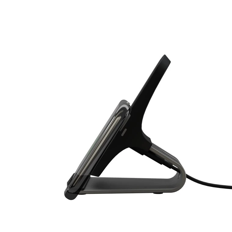 Kaks-ühes praktiline lauapealne mobiiltelefoni hoidja ja juhtmevaba laadija, nii telefonile kui tahvelarvutile.
