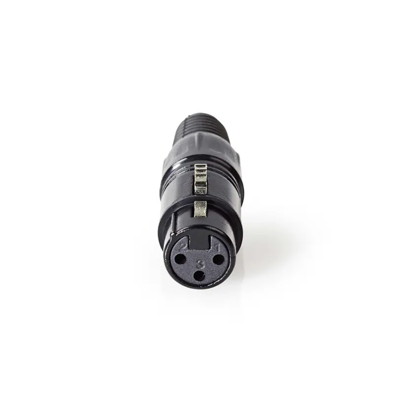 See Nedis "on-stage" seeria 3-viiguline XLR-emaspistik on mõeldud professionaalseteks helirakendusteks, pakkudes turvalist ja stabiilset liidest kvaliteetse heli edastamiseks.