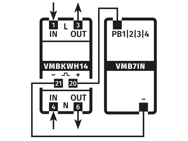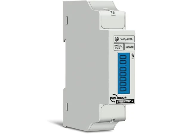This single-phase DIN rail kWh meter is part of a new generation of single-phase electronic watt-hour meters, adopting micro-electronic techniques, LSI circuits and advanced digital and SMT techniques. The meter is in conformity with the relevant technical requirements of Class 1, Class 2 and IEC62052-11, IEC62053-21. This module can be connected to the Velbus installation by using a VMB7IN, 7-channel input module.