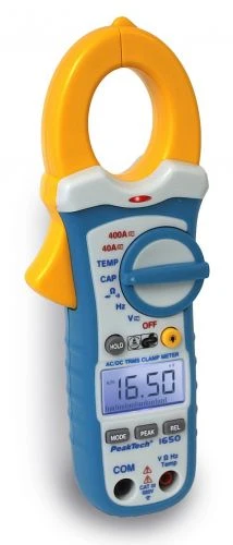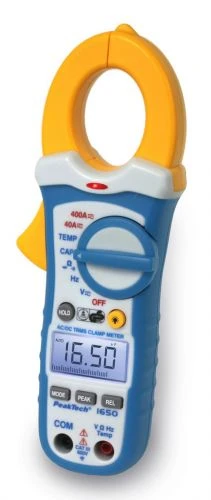 **PeakTech 1650** on mõõteseade vahelduv- ja alalisvooludele kuni **400 A**, kasutades **voolutange** kaabli läbimõõtudele kuni 30 mm. Voolu- ja pingemõõtmised teostatakse **True RMS** (tõeline ruutkeskmine väärtus) mõõtmistena, mis tähendab, et mõõdetud väärtused kuvatakse õigesti isegi siinuslainest kõrvalekalduvate lainekujude puhul.