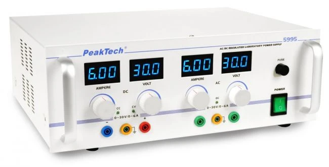 See AC / DC laboratoorne toiteallikas on kahe eraldi reguleeritava väljundiga, mis suudavad väljastada AC/DC pingeid vahemikus 0 - 30 V ja DC/AC voolu 0 - 6 A.