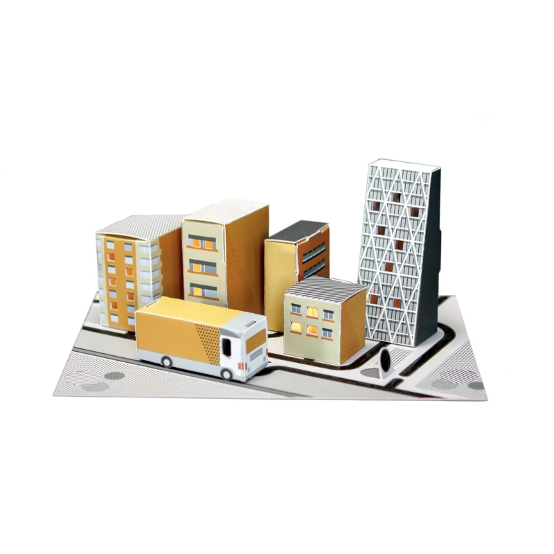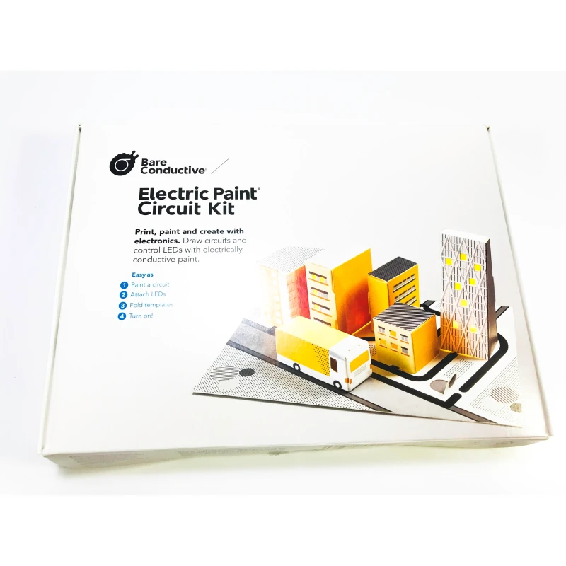 Komplekt sisaldab kõiki komponente, mida vajate oma linna loomiseks; 10-liitrine Electric Paint elektrivärvi tuub paralleelse vooluringi joonistamiseks, volditavate majadega näidispõhjad, LED-ide ja lihtsasti arusaadavate juhistega alus, mis aitab teil kõik kokku panna. Komplekti lameda küljega LED-e on palju lihtsam oma paberiringiga ühendada kui traditsioonilisi avasid läbistavaid LED-e.