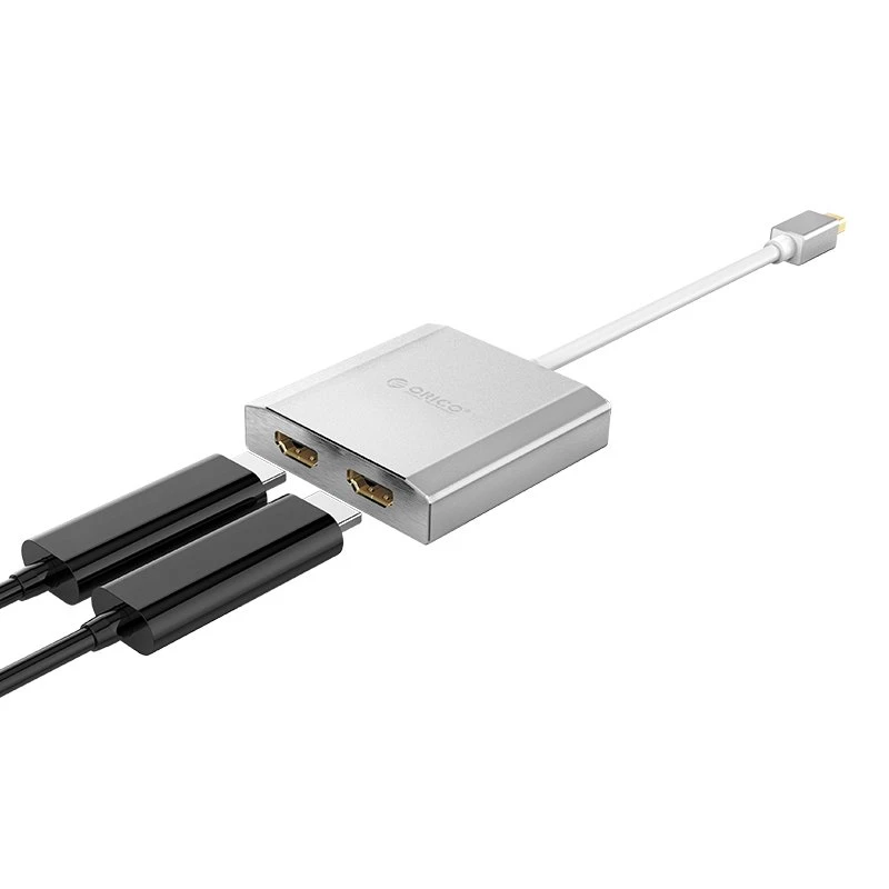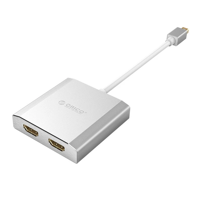 Orico Mini Displayport (vers. 1.2) -> HDMI adapter. Kaabli pikkus 15cm. 2 HDMI väljundit. 4K, 3840*2160@30Hz. Ühenda näiteks sülearvuti külge kaks HDMI´d toetavat lisamonitori.
