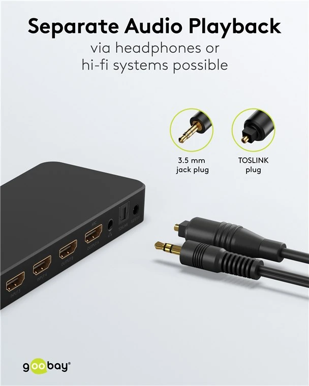 TOSLINK and 3.5 mm jack support separate audio playback via e.g. hi-fi system, soundbar or headphones
