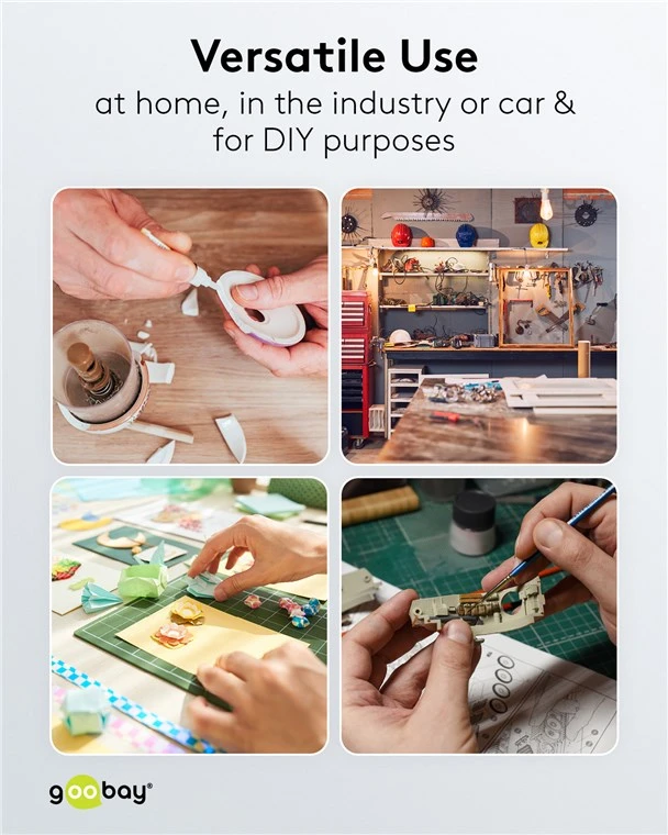 Used as plastic glue, porcelain glue, metal glue, glass glue, shoe glue, plastic glue, ceramic glue, wood glue, model making glue, craft glue or industrial glue.
