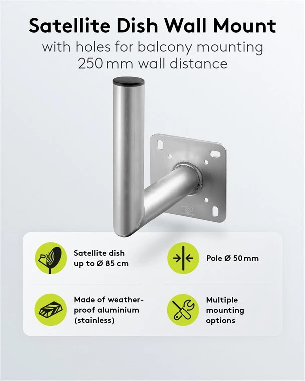 high-quality wall bracket for satellite dishes made of stainless and weatherproof aluminium