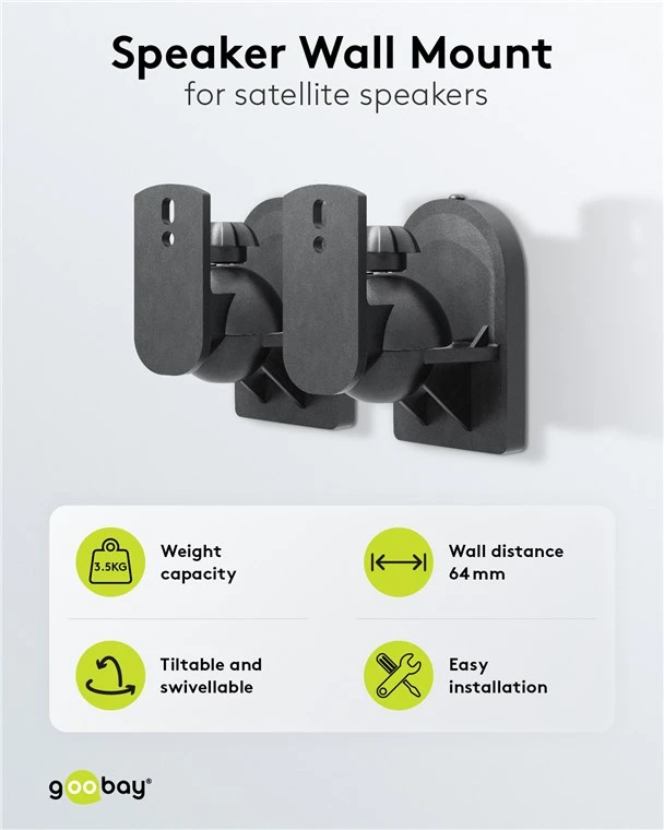 Ideal for speakers and satellite speakers up to 3.5 kg in home cinema systems, surround sound and hi-fi systems, wall distance of the speaker: 6.4 cm