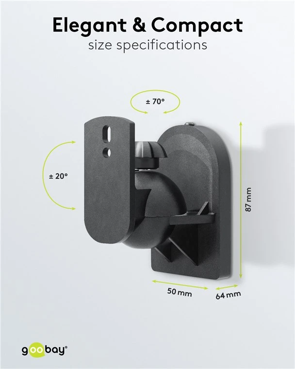The compact wall mount ensures full flexibility of the loudspeaker in all directions and a highly secure hold