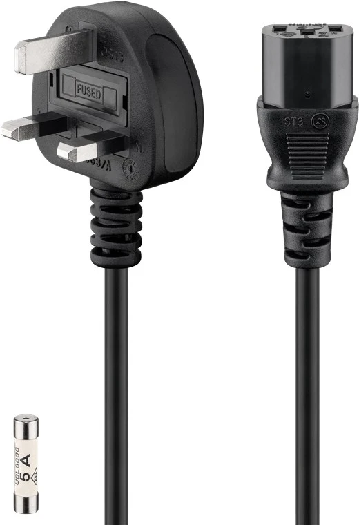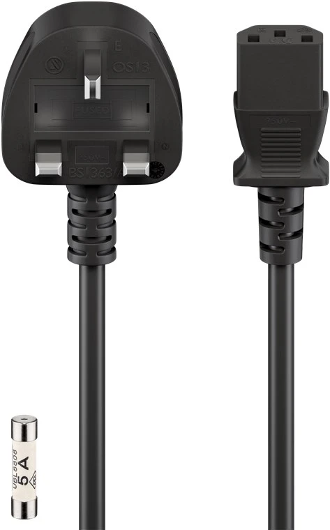 UK 3-pin male (Type G, BS 1363) > Device socket C13 (IEC connection)