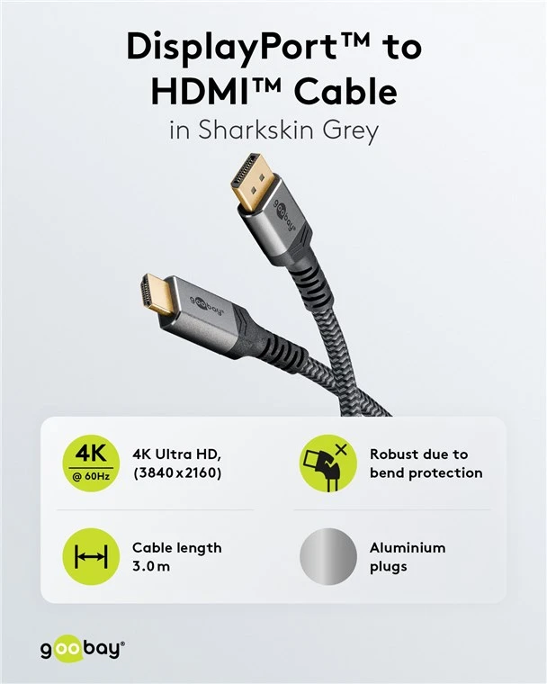 The cable provides an easy solution for connecting a DisplayPort™ source to a TV or monitor with HDMI™ connection - for a razor-sharp picture with up to 4K and an immersive sound experience via devices without their own DisplayPort™ connection.