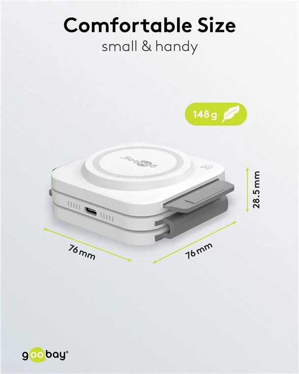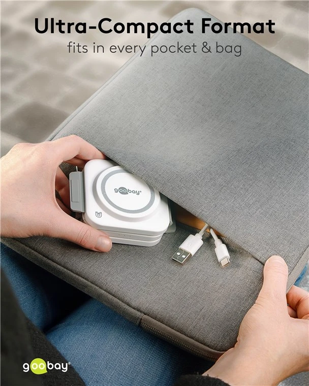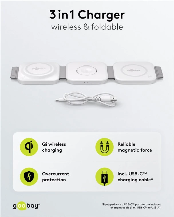The 3in1 charging solution is the perfect travel companion, impressing with its flexible folding function for an ultra-compact format that fits in any pocket.