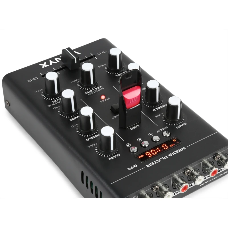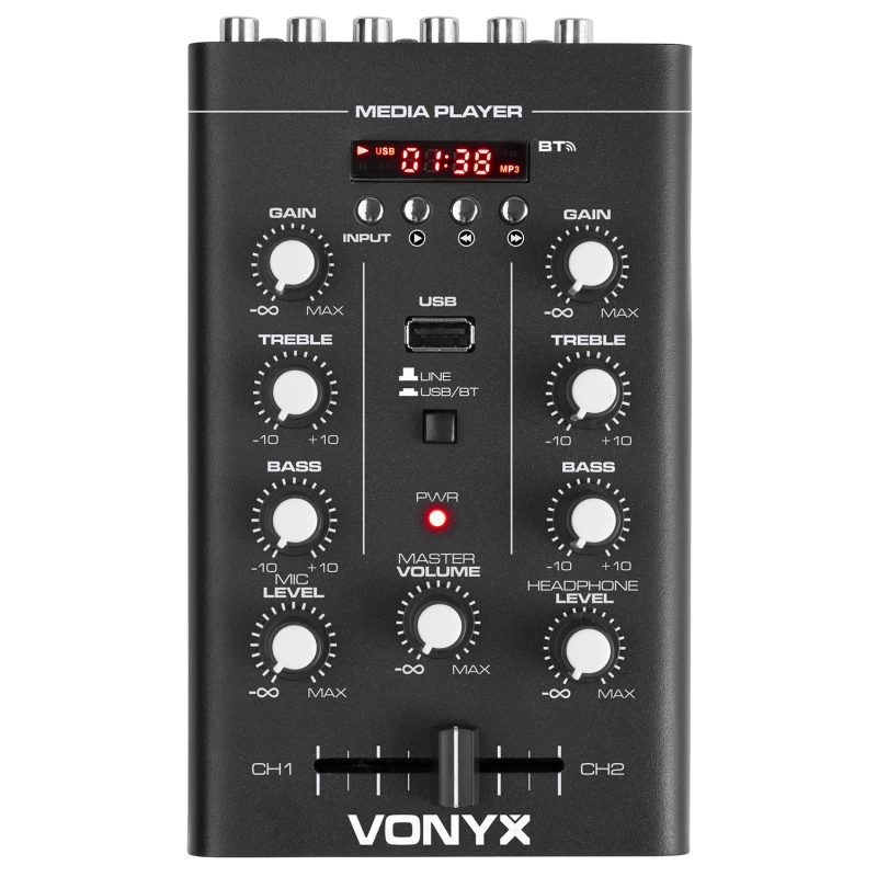Vonyx STM500BT on ülimalt kaasaskantav ja kerge DJ mikser koos BT-ga. Lisaks kahele RCA-liinisisendile ja RCA-peaväljundile on esiküljel ka mikrofoni sisend ja kõrvaklappide väljund. Igal kanalil on 2-ribaline EQ ning helikvaliteet ja dünaamiline ulatus teevad sellest mikserist ühe oma klassi parima.