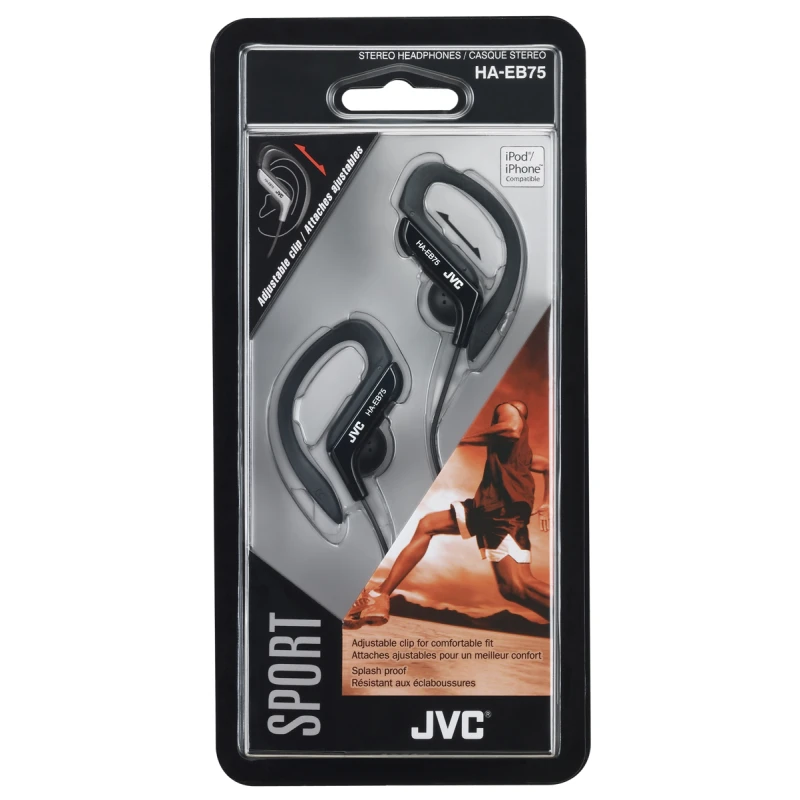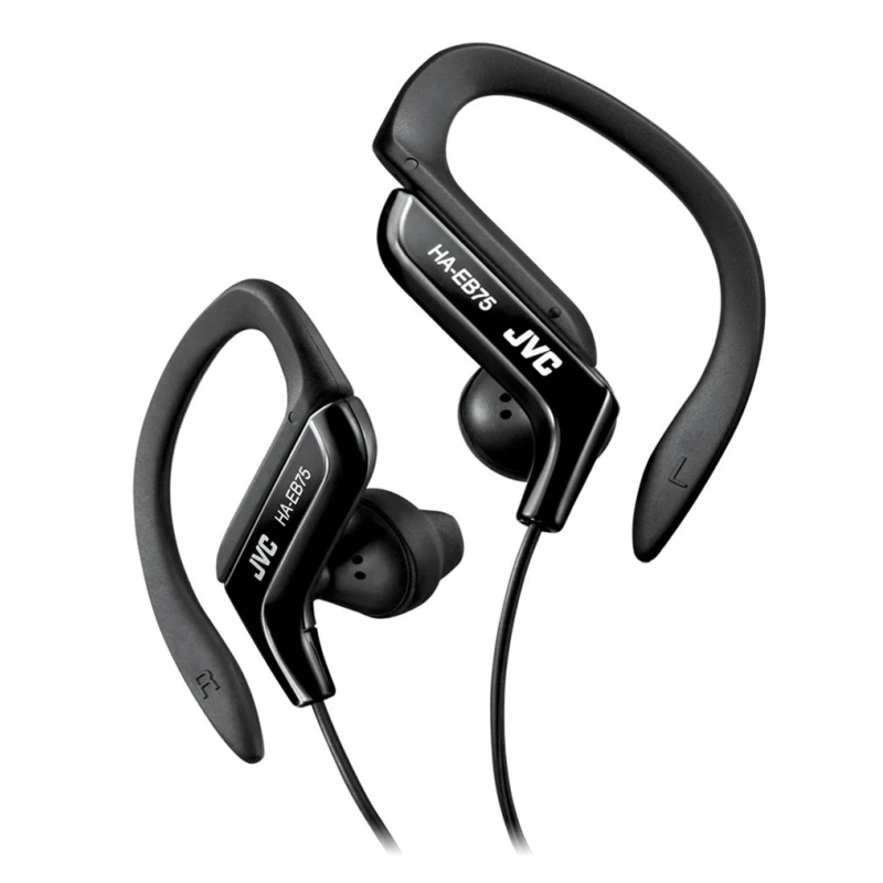 Spordi kõrvaklapid kõrva kinnitusega ja reguleeritavusega mugavamaks kandmiseks, musta värvi.