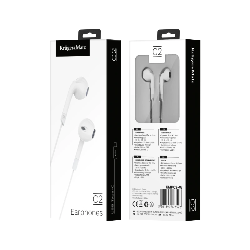 Stiil ja mugavus Väärib märkimist, et Kruger&Matz C2 juhtmega kõrvaklappidel on USB C pistik. See tähendab, et need on suurepärane valik kõigile, kellel on nutitelefon, mis ei ole varustatud klassikalise kõrvaklappide pesaga. Oluline on, et kõrvaklapid on saadaval kahes värvitoonis – must ja valge. Otsusta ise, kumb sulle paremini sobib!