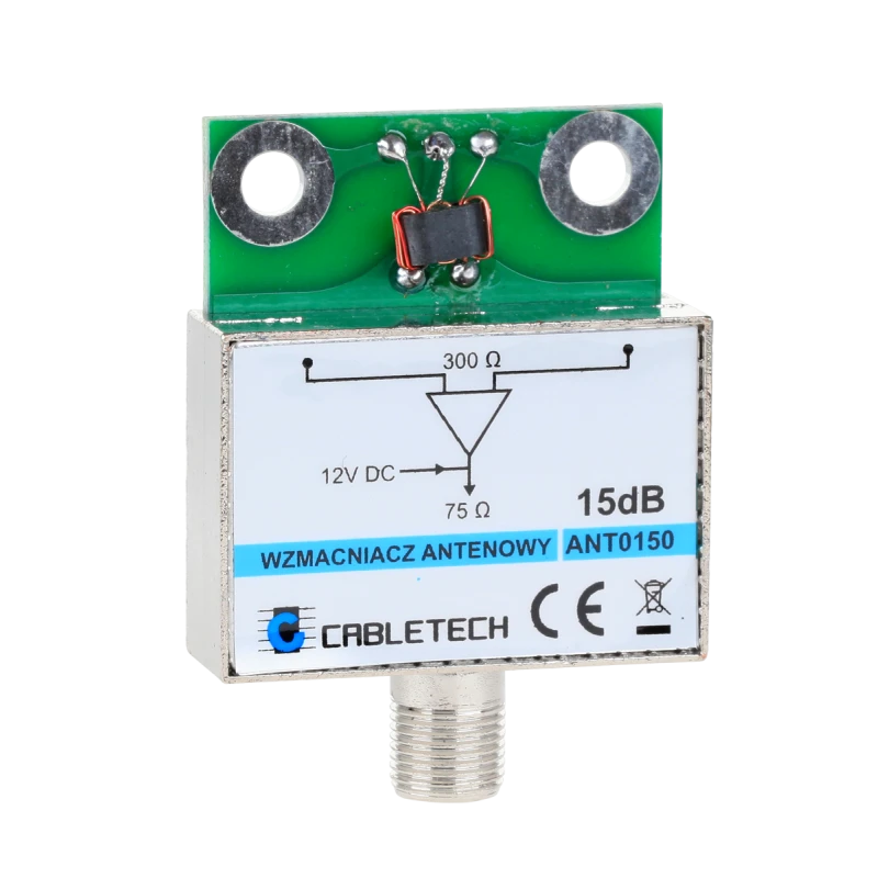 Varjestatud antennivõimendi 15dB võrkantennidele, millel on F-tüüpi pistik.