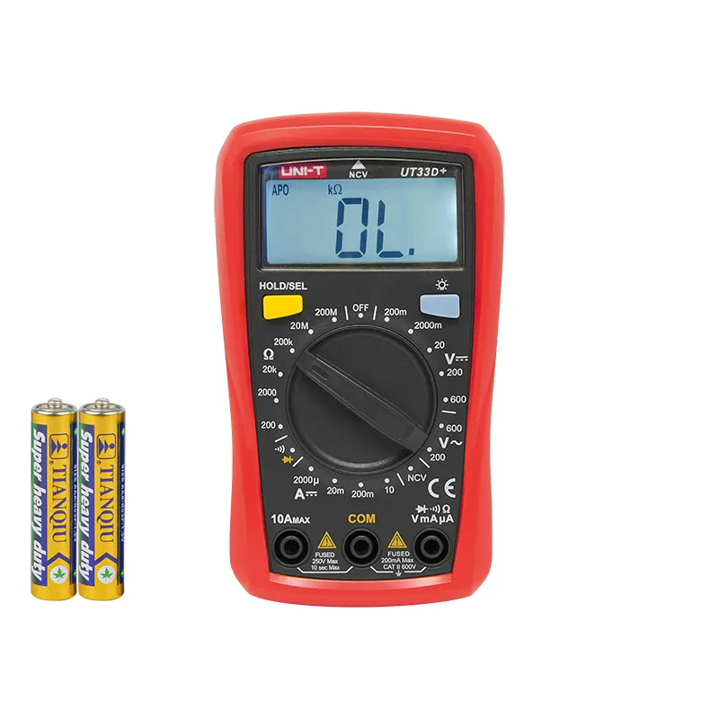 Väike tester kukkumiskindla korpusega. Hele ja loetav ekraan muudab seadme kasutamise lihtsaks. UT33 seeria tagab kasutajatele ohutu töö CAT II 600 V keskkonnas. Spetsifikatsioon: Alalispinge: 200mV/2V/20V/200V/600V ±(0,5%+2) Vahelduvpinge: 200V/600V ±(1,2%+3) Alalisvool: 10A ±(1%+2) ±(1%+2) Takistus: 200Ω/2kΩ/20kΩ/200kΩ/2MΩ/20MΩ/200MΩ ±(0,8%+2) Funktsioonid: transistoride hFe mõõtmine, dioodide testimine, pidevuse test summeriga, NCV Toide: 1,5 V patarei (AAA) x 2 Toote mõõdud: 130x73,5x35mm Toote kaal: 156 g