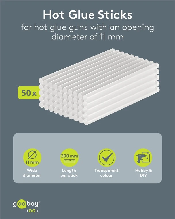 Glue sticks for all hot glue guns with a 11 mm opening, perfect for model making, all craft and DIY projects, decorating or repairing