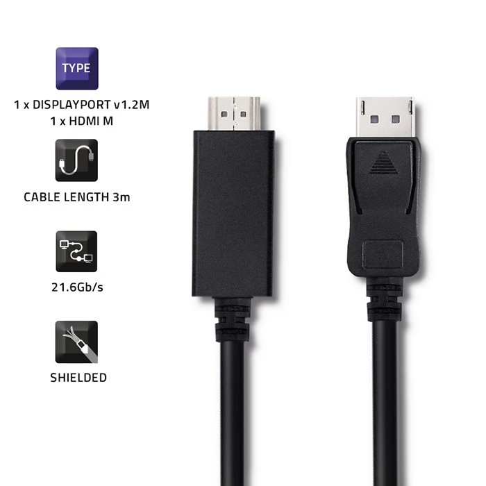 Additional information: - One-way cable from DisplayPort to HDMI - Shielded