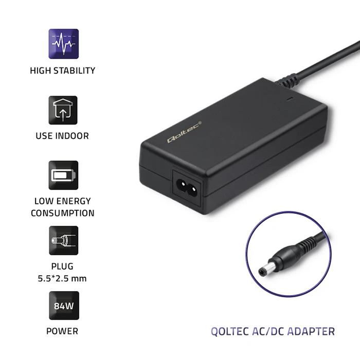 You value the quality of purchased equipment so our projects and solutions are focused on meeting your expectations. Qoltec AC power adapter is covered by 24 months warranty.