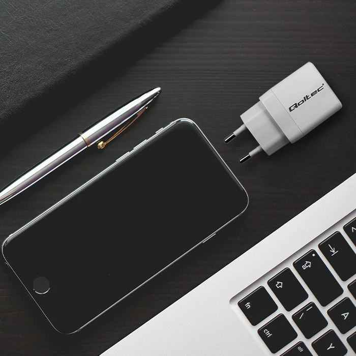 Fast, efficient and energy-saving charging thanks to modern gallium nitride materialThe Qoltec brand charger is equipped with the most advanced GaN charging technology based on the use of a new gallium nitride semiconductor material. Depending on the type of device being charged, the charger selects the correct voltage and amperage according to the battery parameters, protecting the battery from overheating.