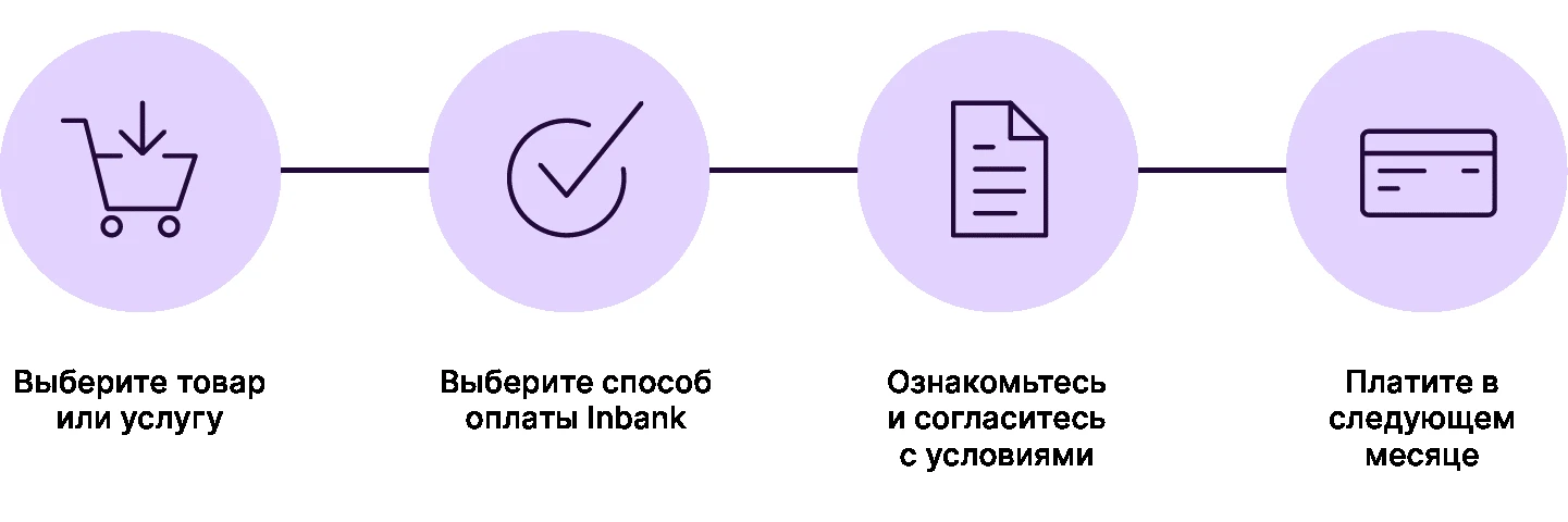 • Способ оплаты Inbank платите позже – это не рассрочка, а безкредитный способ оплаты, он не влияет на ваш кредитный рейтинг.
