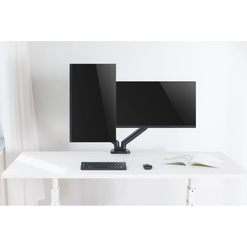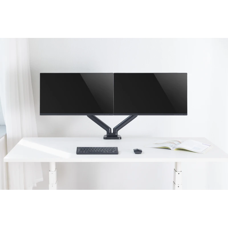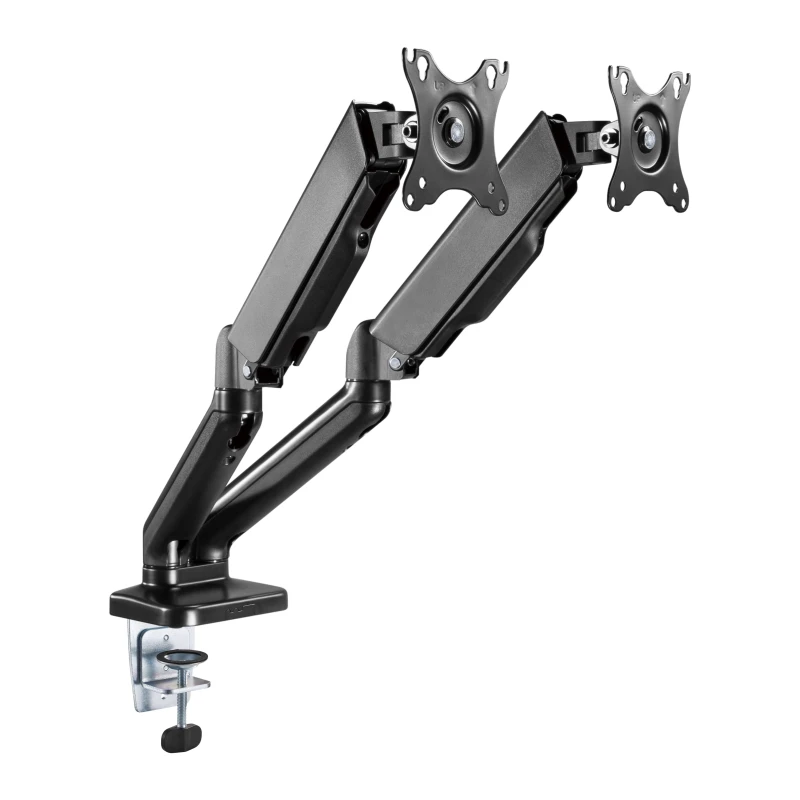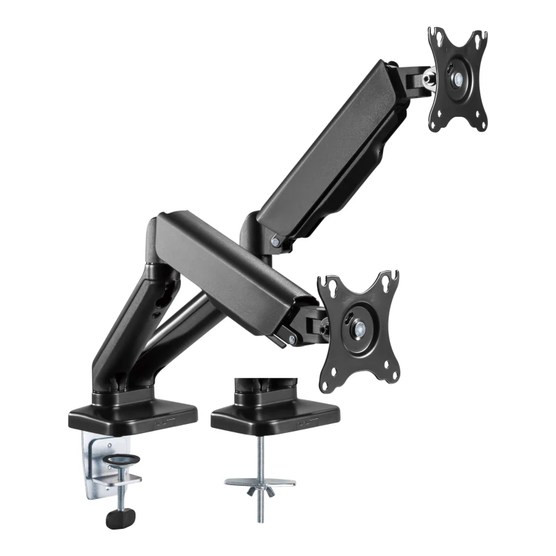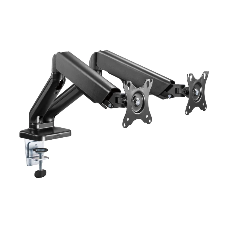 Кронштейн для двух мониторов ✔ Подходит для большинства мониторов 17"–32" ✔ Газовый амортизатор идеально уравновешивает вес монитора ✔ Встроенный регулятор натяжения пружины ✔ Кабель-менеджмент для аккуратного рабочего места ✔ Два варианта крепления – зажим и монтажный болт в комплекте ✔ В комплекте монтажные аксессуары ✔ Цвет: черный