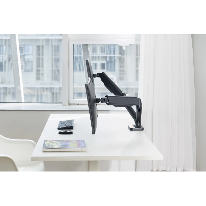 Кронштейны для мониторов серии MAD-G с газовым амортизатором имеют прочную конструкцию и надежный механизм. Высококачественный газовый амортизатор обеспечивает плавное движение монитора – вверх, вниз, вперед и назад – для достижения оптимального эргономичного положения. Удобная VESA-пластина позволяет быстро устанавливать и снимать монитор. В комплект входят зажим для стола и сквозной монтажный болт. Система управления кабелями поддерживает порядок на рабочем месте и аккуратную организацию проводов. Совместим с VESA-креплениями 75 × 75 и 100 × 100.