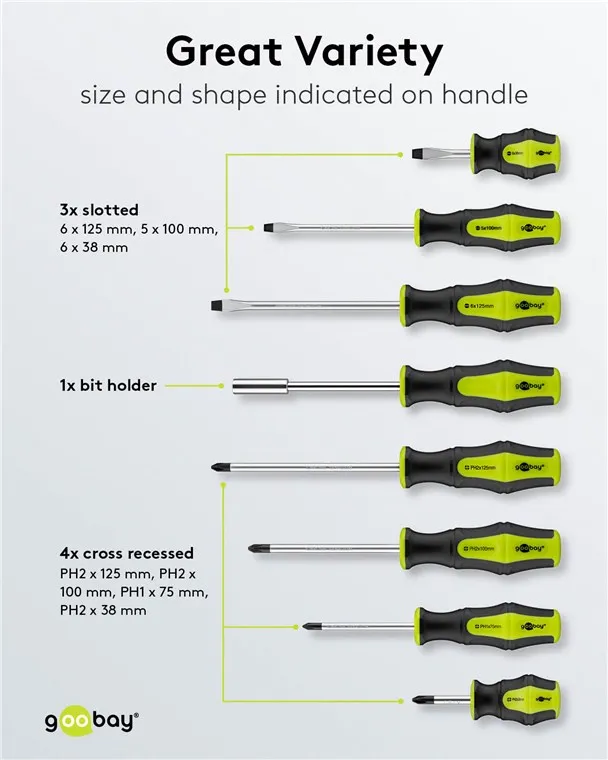 Набор прецизионных отверток Goobay 74005-GBY из 58 предметов — это универсальный и долговечный комплект, предназначенный для детальной сборки, ремонта и общих проектов «сделай сам». Этот комплексный набор предоставляет необходимые инструменты для точных работ, размещенные в прочном, компактном футляре для хранения.