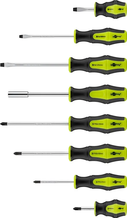 Шлицевые отвертки: 3x (6 x 125 мм, 5 x 100 мм, 6 x 38 мм)