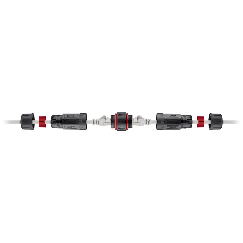 Кабельный соединитель в виде соединительного модуля для наружного применения предназначен для 8-жильного соединения, удлинения, ремонта или перекладки сетевых кабелей передачи данных / LAN и делает ненужными громоздкие соединительные коробки. Простой монтаж без специальных инструментов и легкое расширение. Внешний корпус изготовлен из пластика PA66, класс защиты IP68, оснащен разгрузкой от натяжения с обеих сторон.