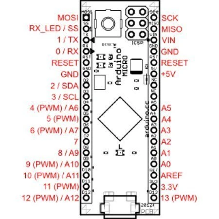 Micro похож на Arduino Leonardo, у них одинаковый микроконтроллер ATmega32u4 с встроенной программной поддержкой USB соединения, что позволяет обойтись без второго контроллера на плате.