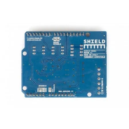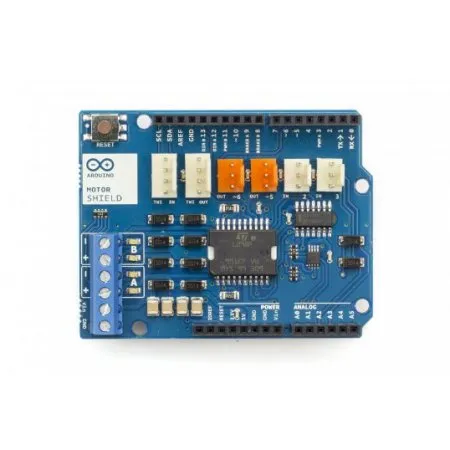 Mootori plaat Arduino arendusplaadile.Võimaldab juhtida 2 DC mootorit või 1 samm-mootorit. 2 A kanali kohta (4 A kogu vool) ja vajab eraldi toidet.
