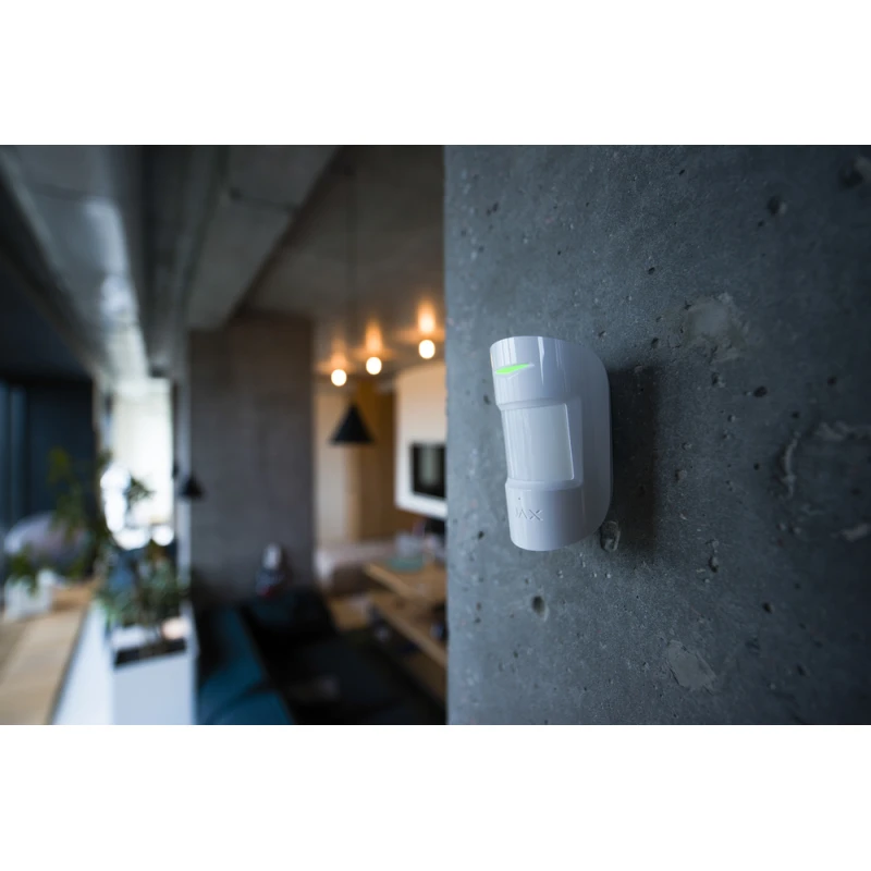 Ajax CombiProtect - беспроводной датчик движения и разбития. Ajax CombiProtect определяет появление человека в помещении с первого шага, но игнорирует движение животных, сквозняки и помехи от кондиционера. Дополнительно контролирует целостность стекол в радиусе 9 метров от датчика.