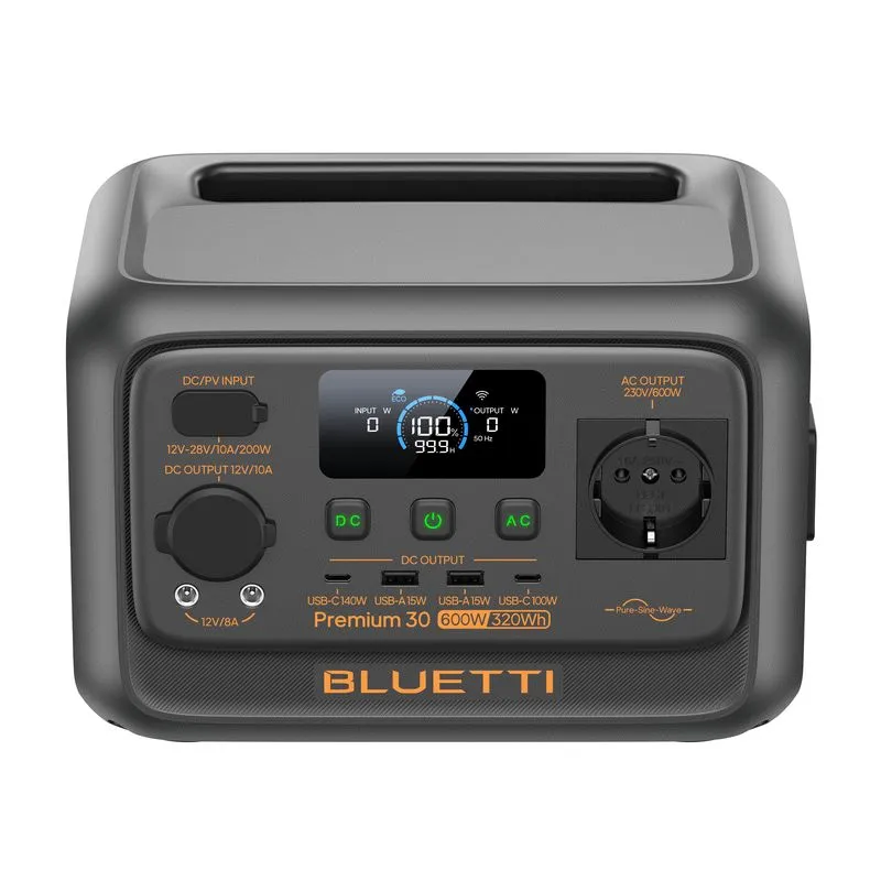Bluetti Premium 30 V2 — это компактная, но удивительно мощная портативная электростанция, разработанная для обеспечения ваших потребностей в энергии в поездках или во время неожиданных перебоев в сети. Благодаря 8 портам вывода и надежной постоянной мощности 600 Вт, она является идеальным спутником для одновременной работы нескольких небольших устройств. Особенностью этой модели является впечатляющая пусковая мощность до 1500 Вт, позволяющая справляться с нагревательными приборами с высоким сопротивлением, такими как мини-кофеварки, чайники и тостеры.