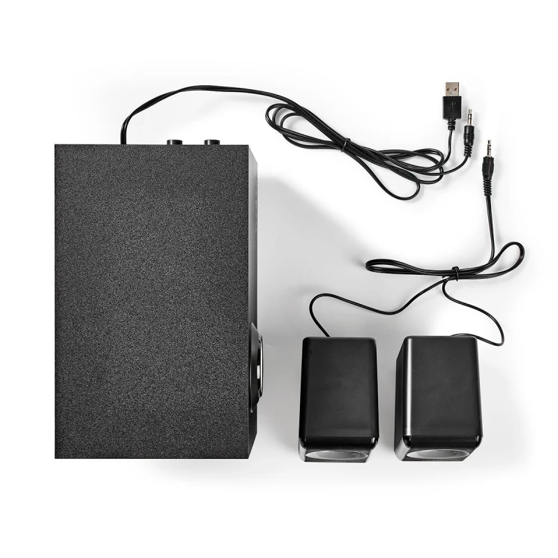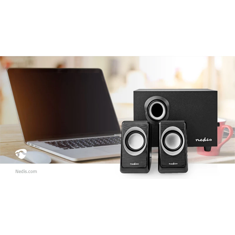 Превратите слабый, жесткий звук вашего компьютера и смартфона в текстурированное и насыщенное стереокачество 2.1 с помощью этого комплекта динамиков Nedis мощностью 33 Вт с питанием от USB. Два динамика и мощный сабвуфер подключаются к компьютеру или смартфону через стереоразъем 3,5 мм и получают питание через USB-соединение — внешний адаптер питания не требуется. Выходная мощность 33 Вт обеспечивает идеальное воспроизведение звука, улавливая все нюансы и полутона, благодаря сабвуферу мощностью 15 Вт с деревянным корпусом.