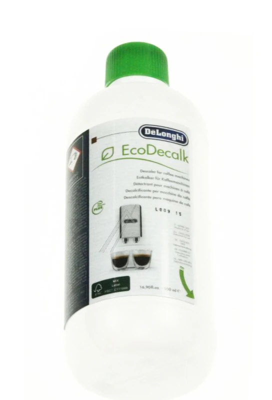 Универсальная жидкость для удаления накипи. Подходит для всех кофемашин Delonghi. Эффективно удаляет накипь, бережно относится к внутренним деталям. Экологически чистое средство сделанное на основе молочной кислоты. EcoDecalc создан из натурального и высококачественного сырья, биоразлагаемого и не загрязняет окружающую среду. Упаковка на 50% сделана из переработанного пластика. Лабораторные тесты доказали, что средство от накипи De'Longhi в 3 раза эффективнее обычных средств для удаления накипи, поэтому оптимально подходит для восстановления оптимального состояния кофемашины.