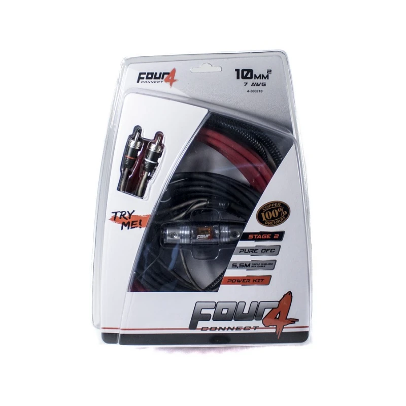 Этот комплект питания FOUR Connect предоставляет необходимую проводку для установки усилителя и улучшения производительности аудиосистемы.