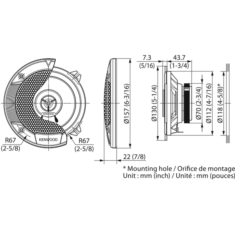 Диаметр монтажного отверстия Ø: 114 мм