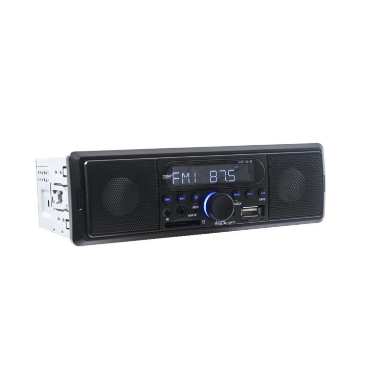 FOUR Mobile 4-MP150SP – это компактный медиаплеер, предназначенный для развлечений в автомобиле и звонков в режиме hands-free, совместимый с системами 12 В и 24 В. Он предлагает универсальные возможности воспроизведения аудио и простую установку.