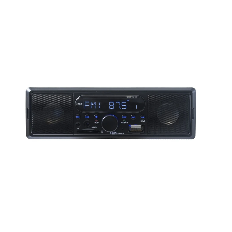 - Воспроизведение аудио через SD-карту памяти, USB-накопитель, радио, Aux-In и потоковую передачу аудио по Bluetooth.