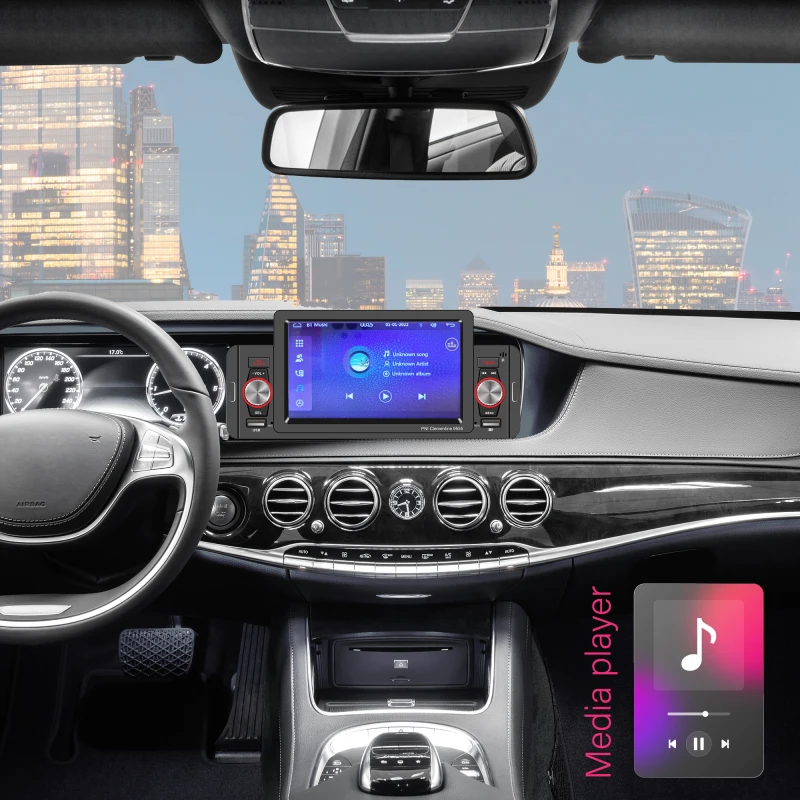 - 5-дюймовый цветной сенсорный экран: Обеспечивает интуитивное визуальное взаимодействие с разрешением 480 x 800 пикселей, поддерживая воспроизведение видео, навигацию и отображение камеры заднего вида (камера не входит в комплект).